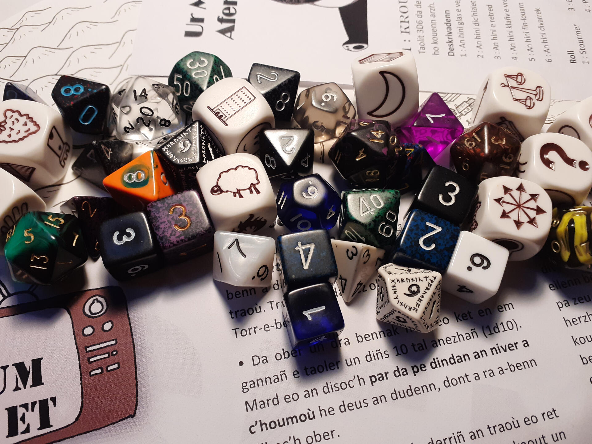 On this webstead you will find:• Some files to download, mostly oversettings of role-playing games or board-games;• Landsheets, lore and material to download for your RPG sessions;• Wordlists in Breton and Scottish Gaelic for games, wonder-tales or science-fiction.Not much of this will be in English. If you are a Breton, Gaelic, or French learner, know that we will try to make some of our material more accessible at times.