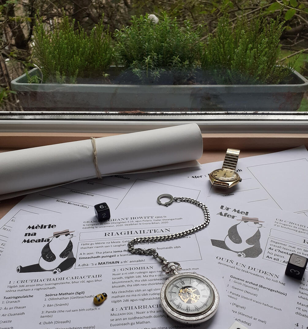 On this webstead you will find:• Some files to download, mostly oversettings of role-playing games or board-games;• Landsheets, lore and material to download for your RPG sessions;• Wordlists in Breton and Scottish Gaelic for games, wonder-tales or science-fiction.Not much of this will be in English. If you are a Breton, Gaelic, or French learner, know that we will try to make some of our material more accessible at times.