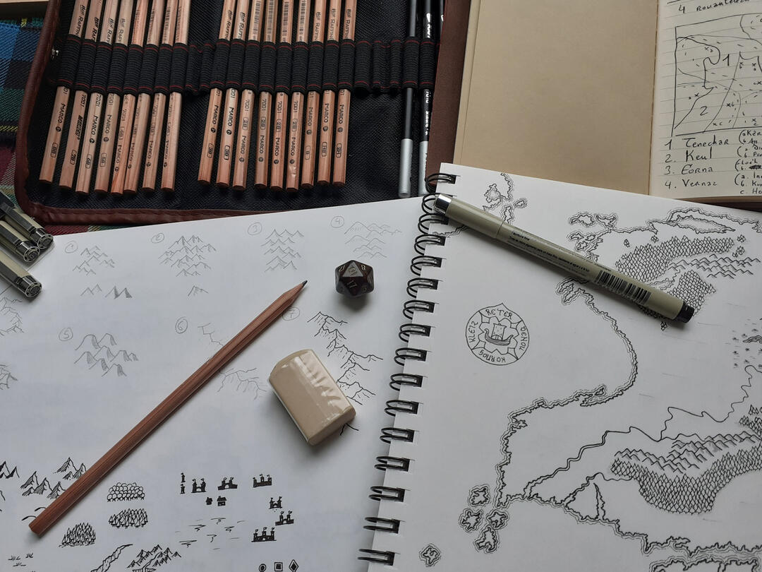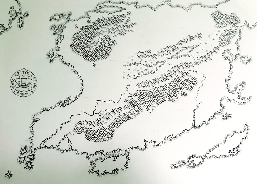 Any good adventurer needs a map, and that's precisely what our cartographers are trying to provide.Be aware that our craft is of Celtic tradition, and thus our landsheets are turned towards the East. This means that the top of each map is the East, the bottom is the West, the right-hand side is the South and the left-hand side the North.A wee note about rights now. These landsheets are free and can be used any way you like in your game sessions and stories. If you wish to share publically some of your work that includes a map we made, pray acknowledge us. If you wish to sell anything that includes one of our maps or story, pray write to us that we may discuss it.And that's it! We hope you'll find something you like here.