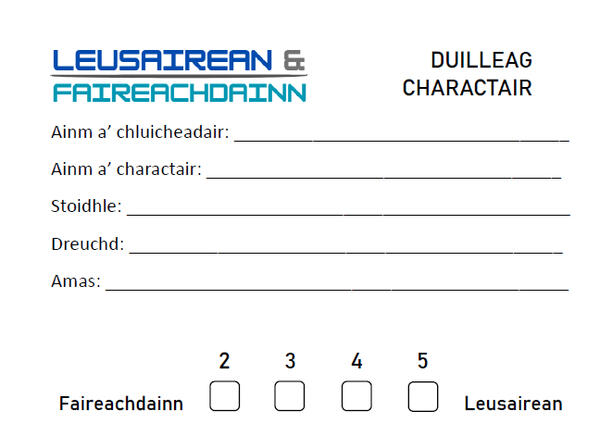 | Duilleag caractair | Follenn Tudenn | Fiche de personnage | Character sheet |